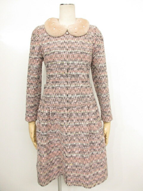 超美品 【ルネ Rene】 ファー付き ツイード生地 コート (レディース) 6743070 織柄 2way ピンク size36 パール 定価18万♪ ★HR458★【中古】