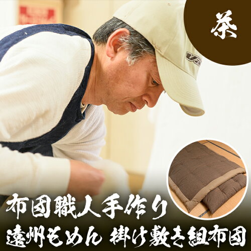 【ふるさと納税】日本製!布団職人手作り遠州もめん掛け敷き組布団(茶) 独自ブレンドの高級綿を詰め通気性抜群の綿布地で縫うすべての工程を手作業で仕上げた高級木綿掛敷布団セット(シングルサイズ)【川村ふとん店】