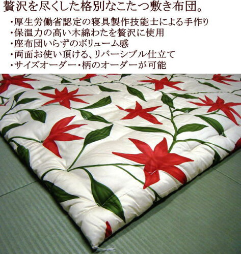 シビラ 木綿わた手作りこたつ敷き布団長方形 220×320cmご注文を頂いてから厚生労働省認定寝具製作技能士が手作りでお仕立てします。こたつ敷きふとん シビラ コタツシキ布団 大きいサイズ 長方形こたつ敷き布団 大判