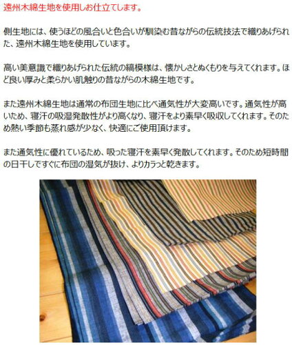 遠州木綿手作り木綿敷き布団純綿仕立て【シードコットン】ダブルサイズ140×200cmダブル敷きふとん 純綿敷き布団 手作り布団 しきふとん 敷きぶとん シキフトン しき布団 綿わた敷き布団 木綿わた敷き布団 木綿敷布団